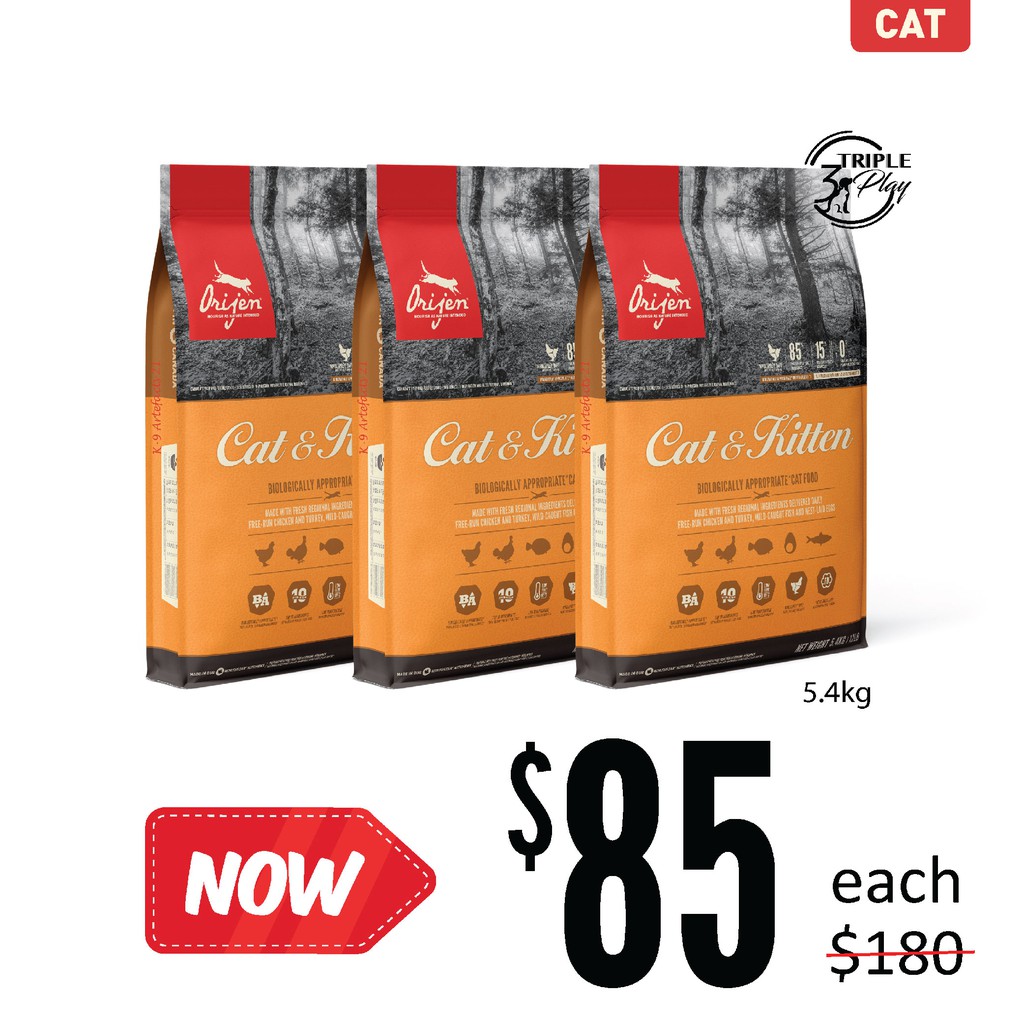 Orijen cat & kitten is brimming with richly nourishing, fresh meats, providing the diet they are evolved to eat.